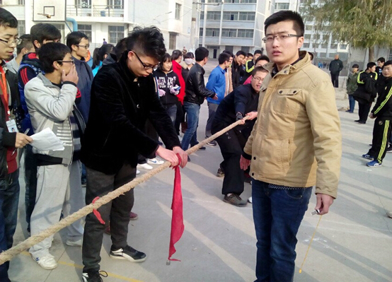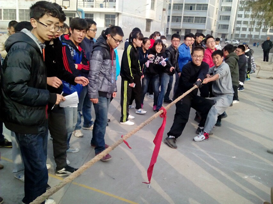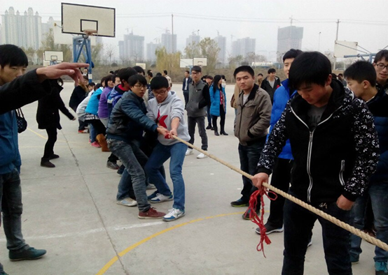 拔河比赛在8点正式开始,首先,先将各个社团分成小组,以小组为单位进行比赛,每个小组分别派出15个男生,5个女生参赛。接下来,在各个社团负责人的带领下,队员们都已上阵,并且摆好姿势,他们身子向后倾,用力地抓住绳子。同时,各个社团参赛的队员一个个互相鼓励,他们脸上闪动着坚定的神情。随后,伴随着哨声响起,参赛的每一个同学都憋足了劲,喊着“一二,一二”的口号向自己的方向拼命的拉绳,而且,各个社团的同学也自发的组成拉拉队为自己社团的队员加油。尽管深秋的天气已透着寒意,但是篮球场上的气氛却十分热烈,各种欢呼声、呐喊声此起彼伏,场面既激烈又温馨,处处都表现着拼搏的精神,体现着团结与友谊的可贵,洋溢着青春的滋味。